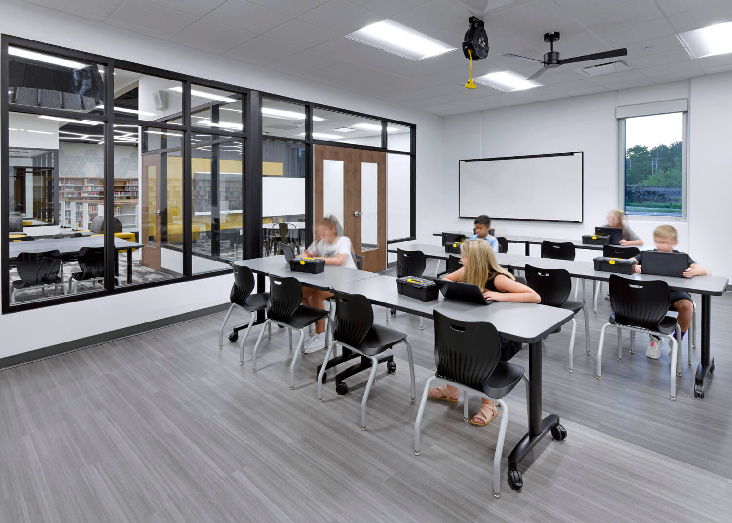 The addition includes a storm shelter safe room designed to serve dual purposes as a library media center, providing both safety and everyday educational value. This space is connected to the existing building by a communal area that can also be used as overflow cafeteria seating. True Engineering delivered comprehensive mechanical, electrical, and plumbing design services, in addition to telecommunications system design, supporting a flexible and resilient learning environment for students and staff.